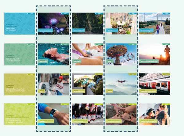 Die Szenariotechnik als Unterrichtsmethode ermöglicht es Lernenden, zu einem „bestimmten Problembereich mögliche Zukunftsszenarien zu entwickeln (Fischer 2022). Ausgangspunkt bildet die Analyse von Einflussfaktoren und deren (Wechsel)Wirkungen auf mögliche Entwicklungen, die wahrscheinlich oder unwahrscheinlich sein können oder aber - je nach Perspektive - wünschbar oder unerwünscht. Hier werden die Szenarien von den Teilnehmer*innen nicht auf Basis der eigenen Recherche entwickelt, sondern mit Hilfe eines Kartensets, das aus den sieben Kategorien Destinationen, Reisemotive, Mobilität, Arbeit, Essen, Rolle der lokalen Bevölkerung und Organisation und Management besteht. Zu jeder dieser Kategorien gehören vier Trendkarten, auf denen unterschiedliche Ausprägungen der Kategorie beschrieben werden.